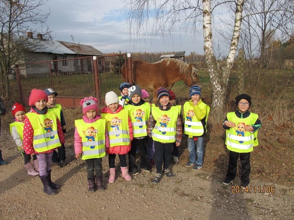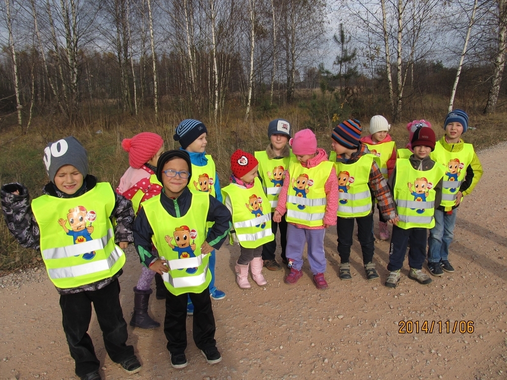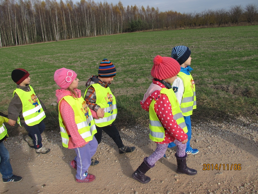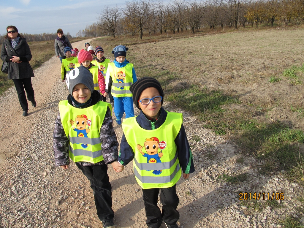 Tegoroczna jesień jest wyjątkowo ciepła i dlatego właśnie 06.11 dzieci z oddziału przedszkolnego wybrały się na wycieczkę w celu poznania najbliższej okolicy. Podczas takiego spaceru dzieci nie tylko poznają okolice, podziwiają uroki jesieni, ale także uczą się właściwych wzorców zachowań. W celu zwiększenia bezpieczeństwa na spacerze przedszkolaki ubrane były w "uśmiechnięte" odblaskowe kamizelki.
