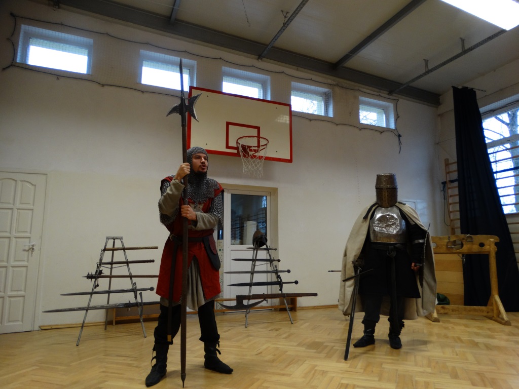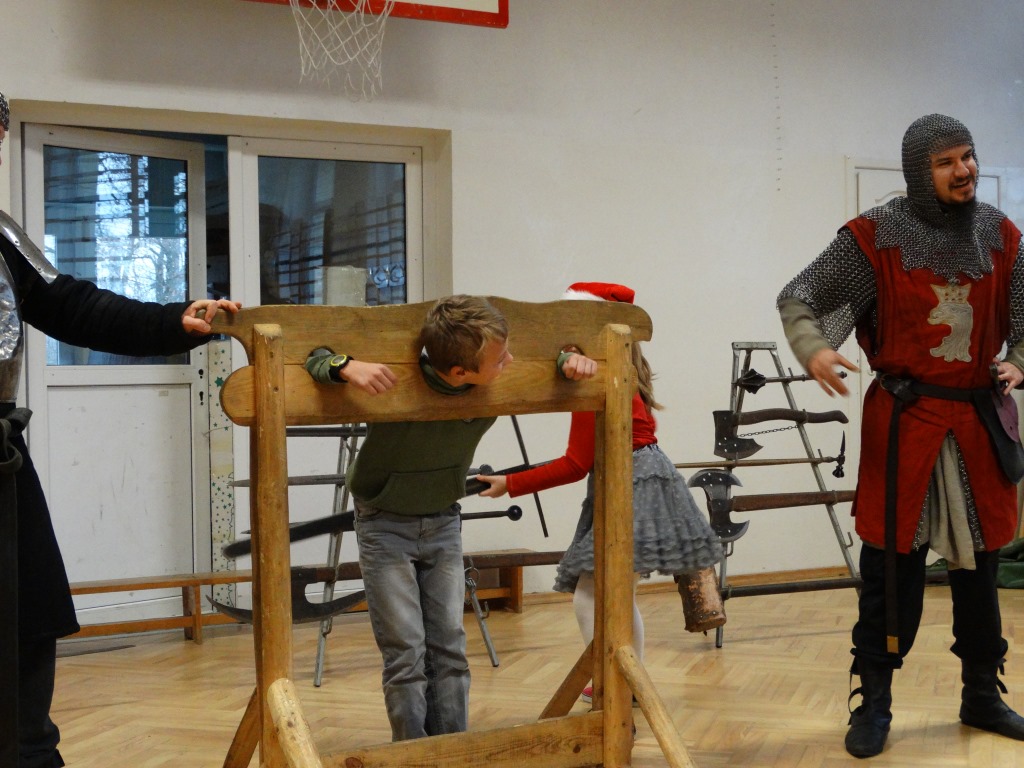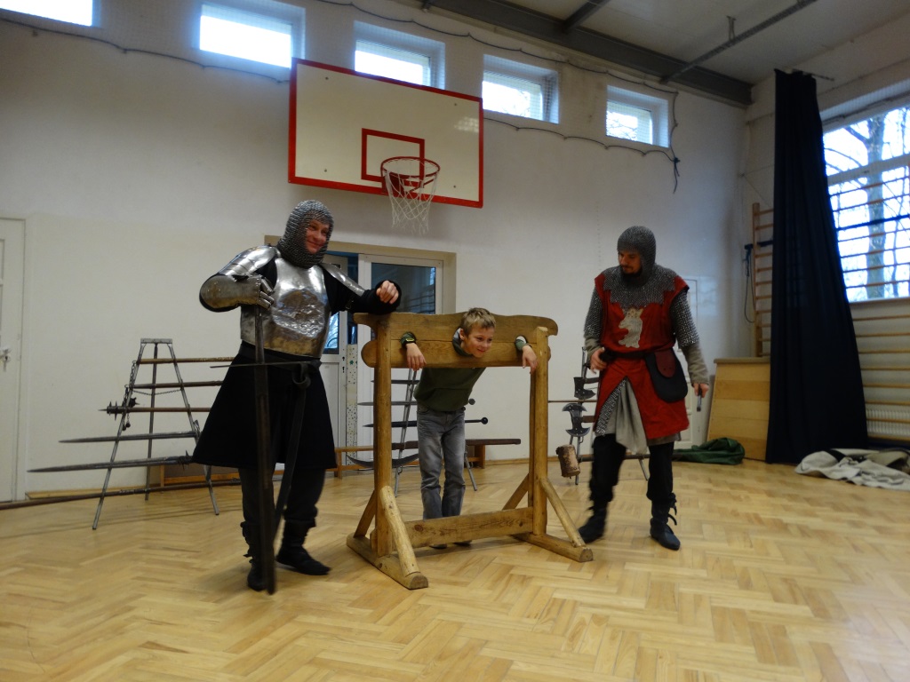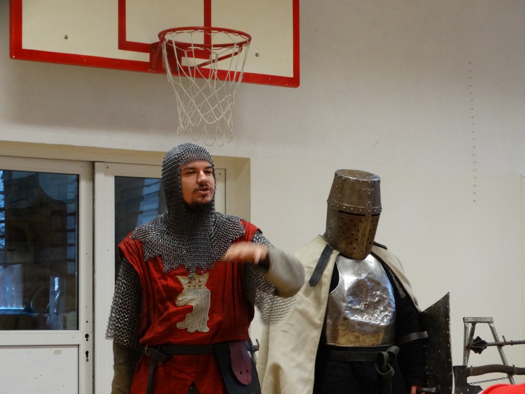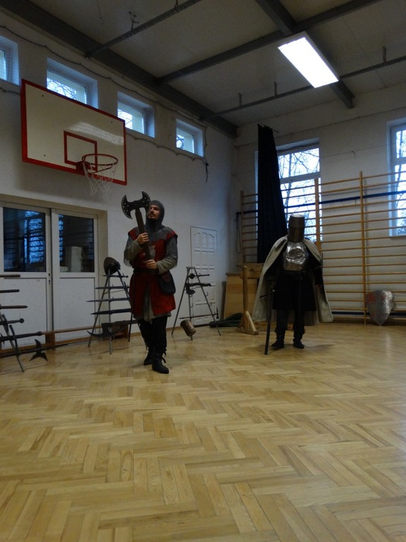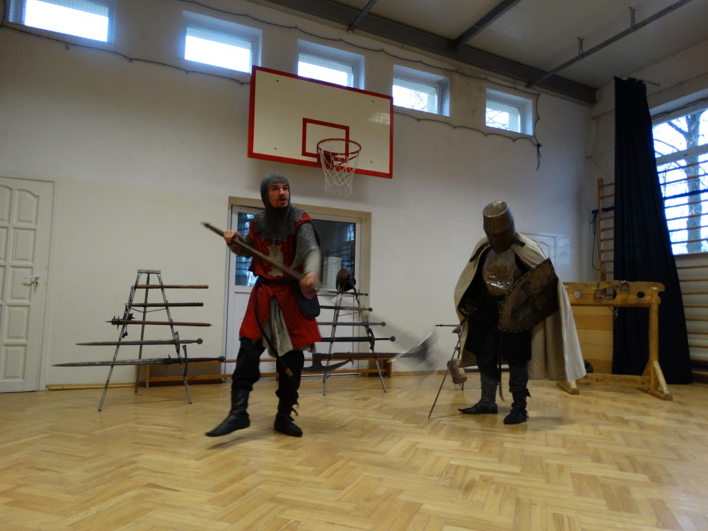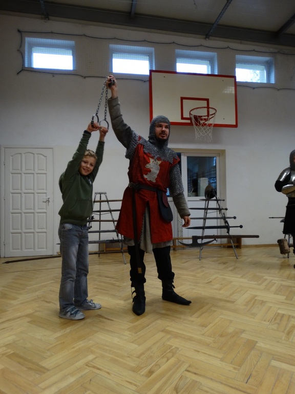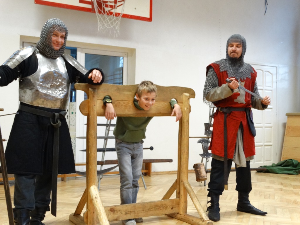 Celem lekcji było przybliżenie drogi do rycerskiego stanu, kodeksu rycerskiego i roli rycerzy w królestwie. Gdyby wszystkie zajęcia obfitowały w takie atrakcje, uczniowie chętnie garnęliby się do uczestniczenia w nich. Nie co dzień można dotknąć miecza, wziąć udział w pojedynku, postać w dybach, dotknąć topora, kiścienia, berdysza czy nadziara. Takie lekcje na długo zapadają w pamięć jej uczestników.