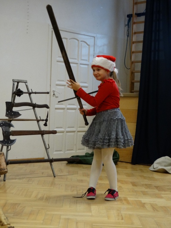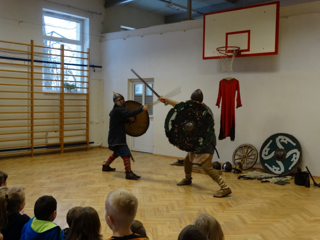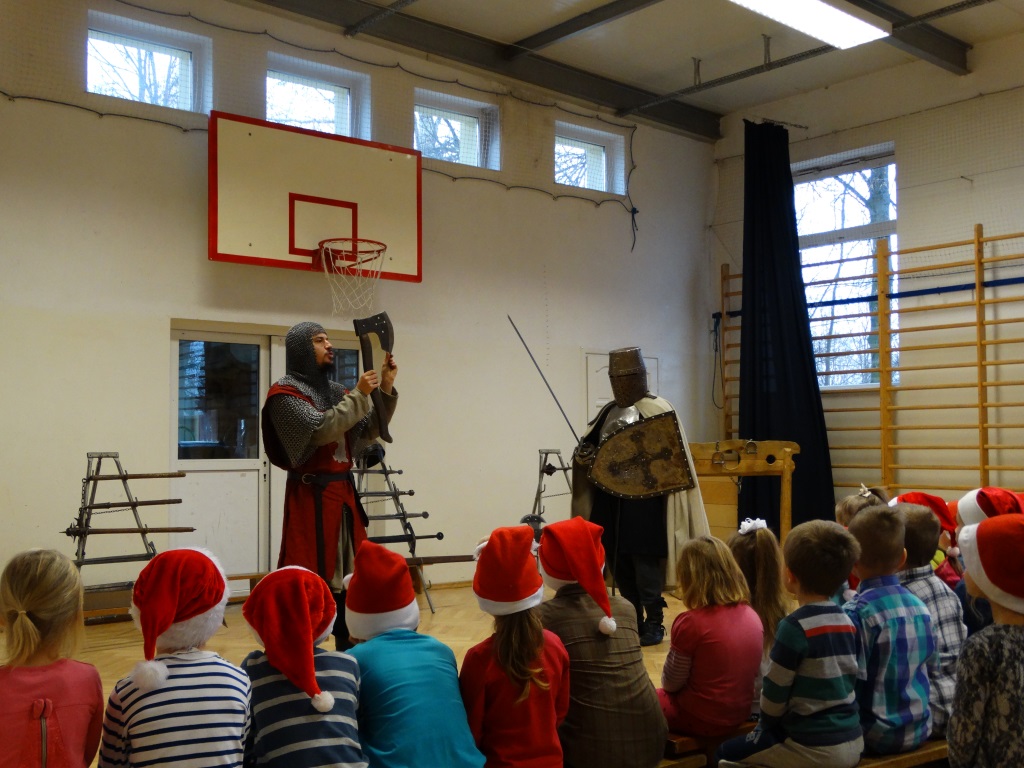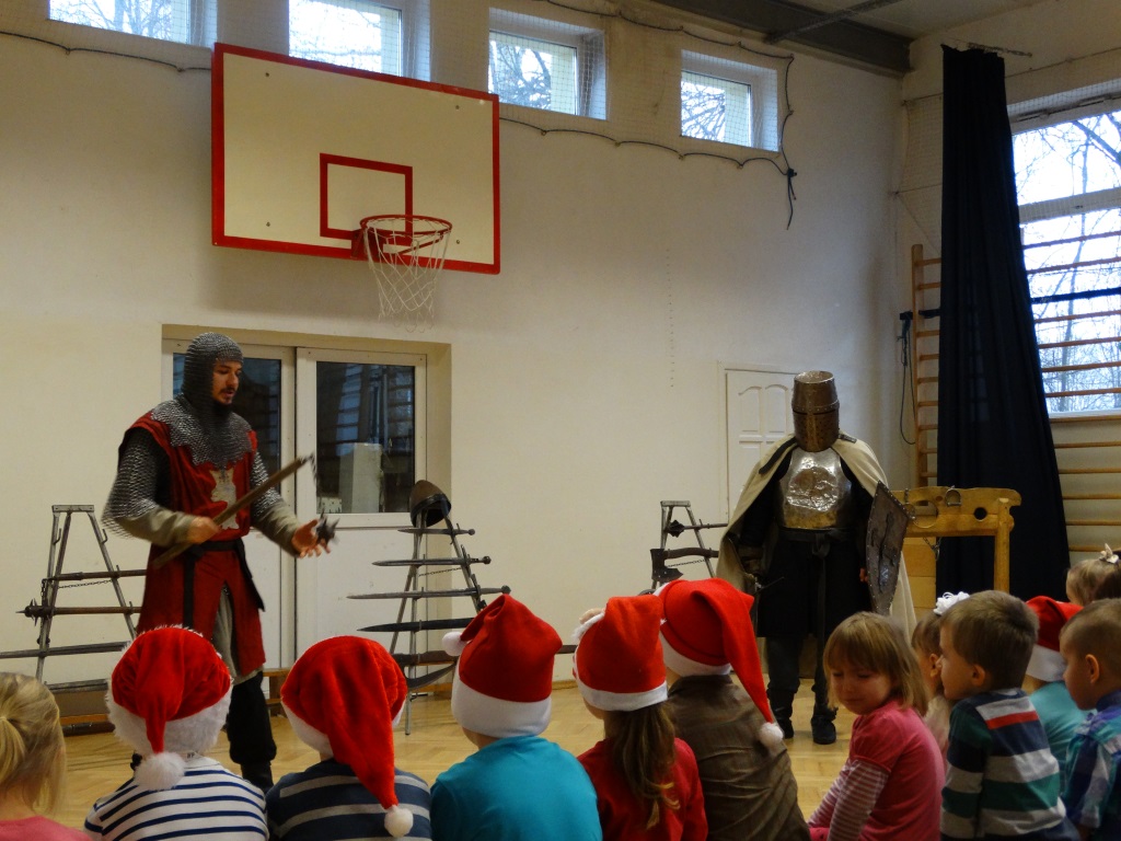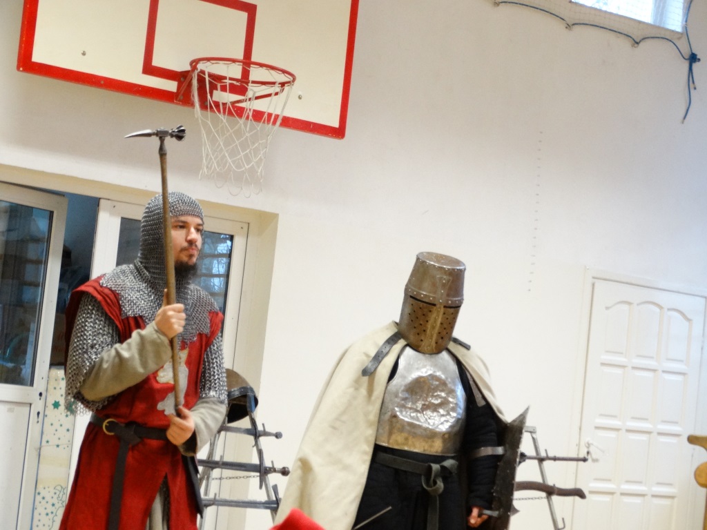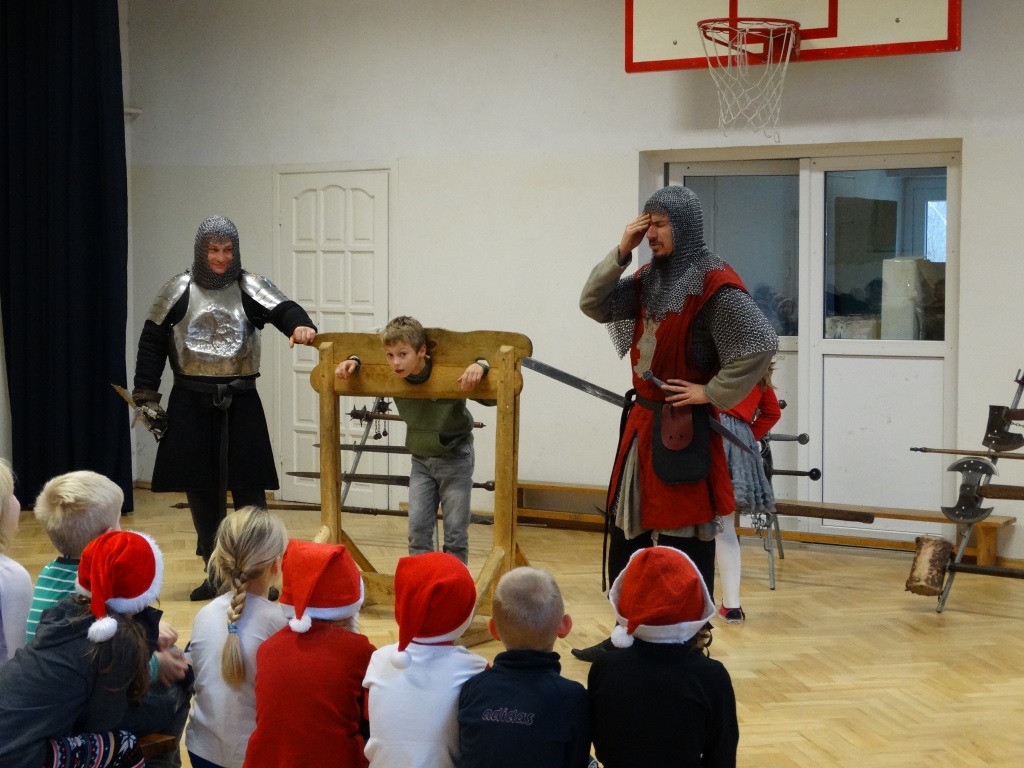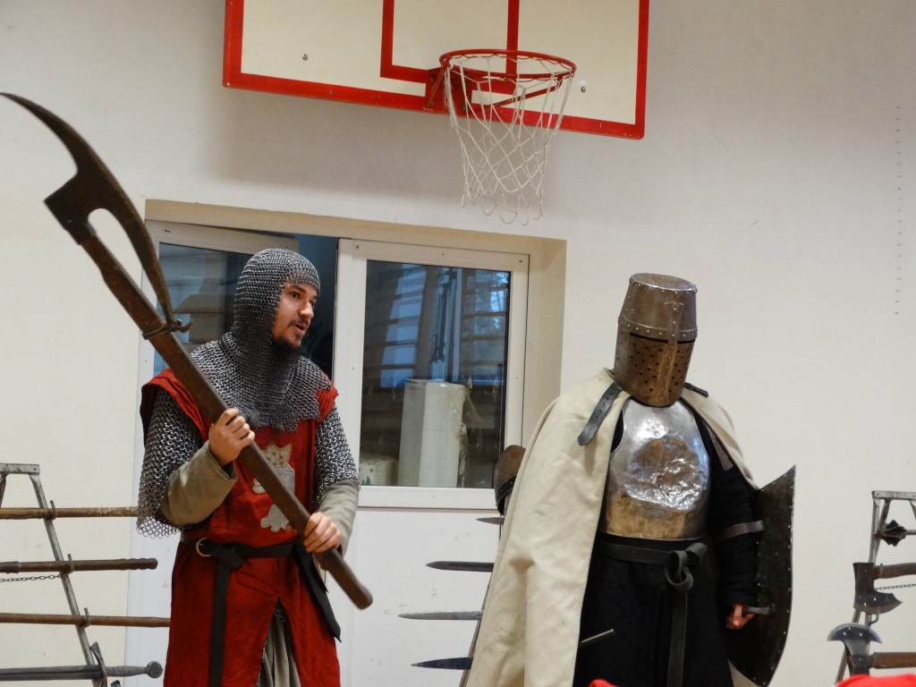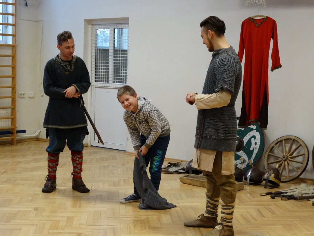 Celem lekcji było przybliżenie drogi do rycerskiego stanu, kodeksu rycerskiego i roli rycerzy w królestwie. Gdyby wszystkie zajęcia obfitowały w takie atrakcje, uczniowie chętnie garnęliby się do uczestniczenia w nich. Nie co dzień można dotknąć miecza, wziąć udział w pojedynku, postać w dybach, dotknąć topora, kiścienia, berdysza czy nadziara. Takie lekcje na długo zapadają w pamięć jej uczestników.