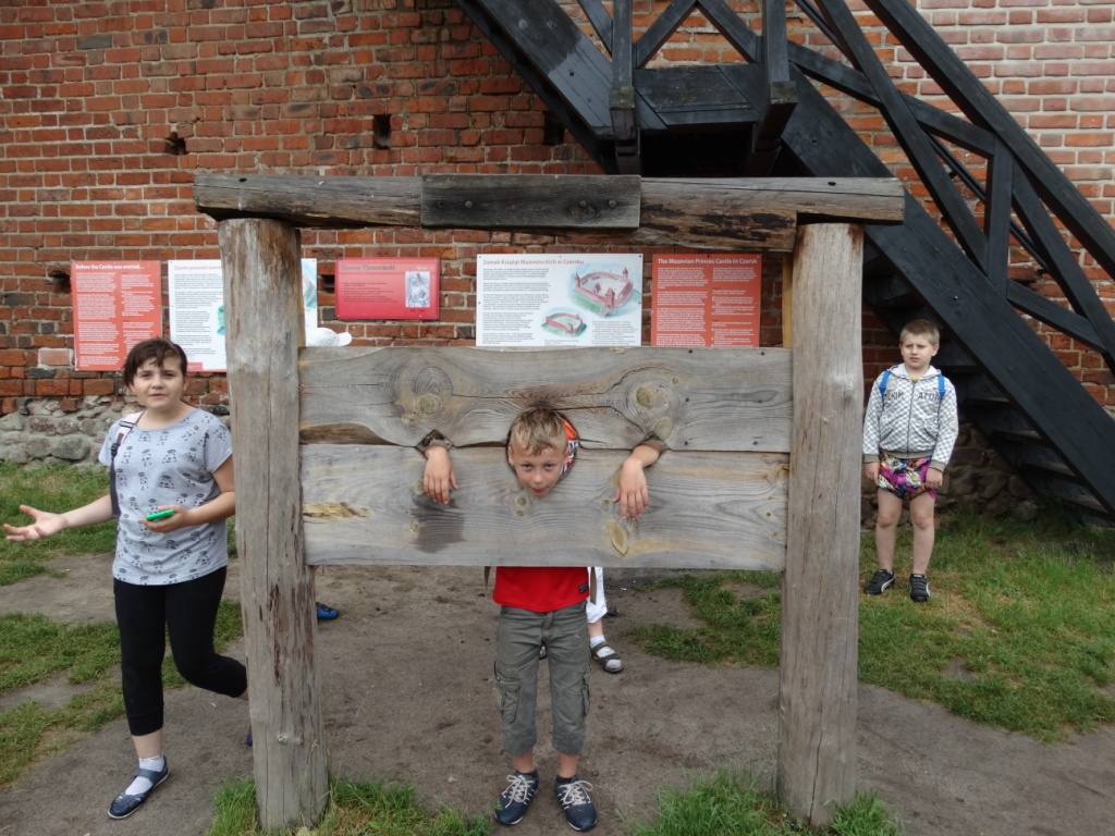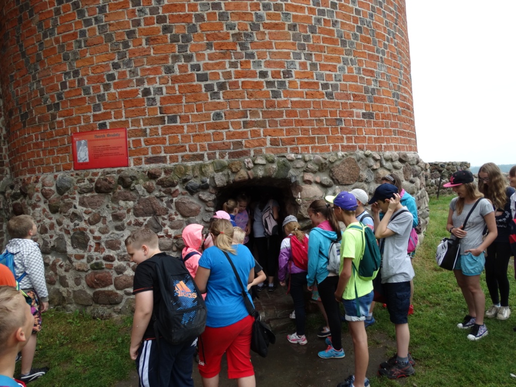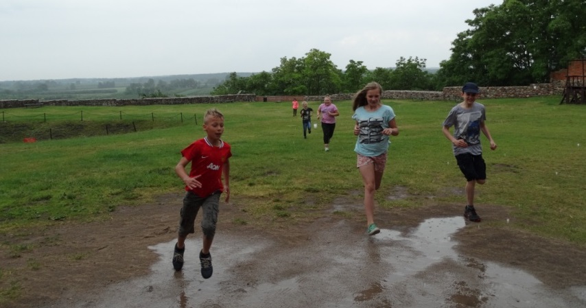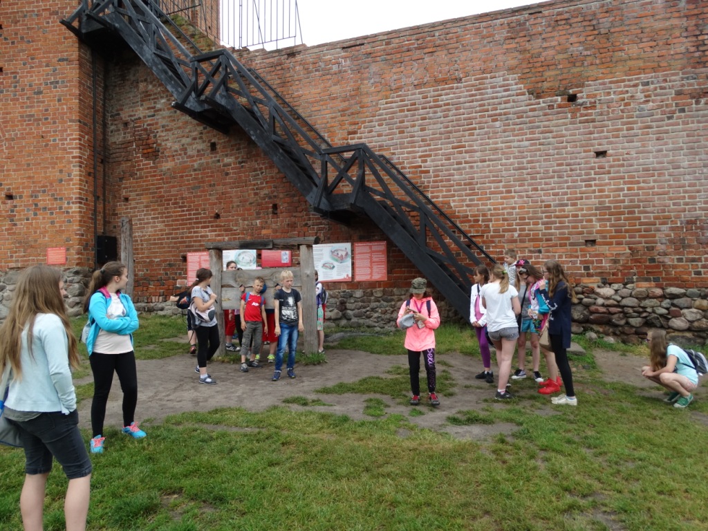 Czersk powitał nas strugami deszczu. Wydawało się, że nic nie uratuje wyjazdu do monumentalnego zamku górującego nad okolicą. Od czego jednak pomysłowość uczniów, którzy błyskawicznie wymyślili berka pod prowizorycznym daszkiem i wyścigi po zamkowym dziedzińcu. Po godzinie przestało padać i można było spokojnie oglądać to, co udało się ocalić ze znamienitego niegdyś zamku.