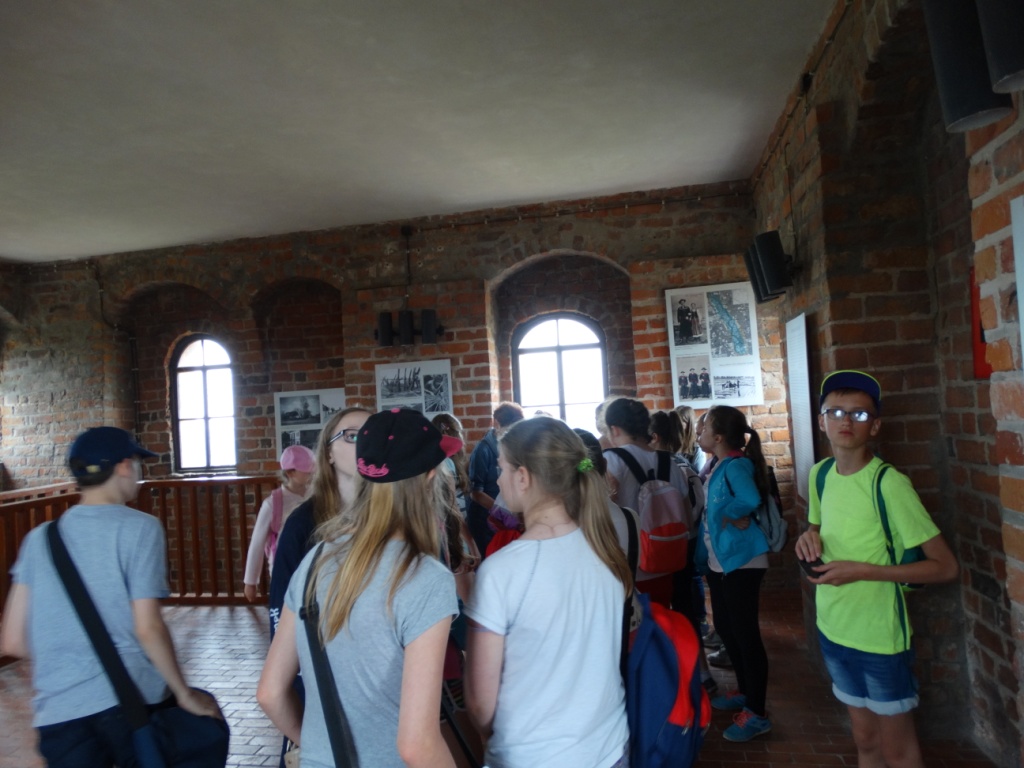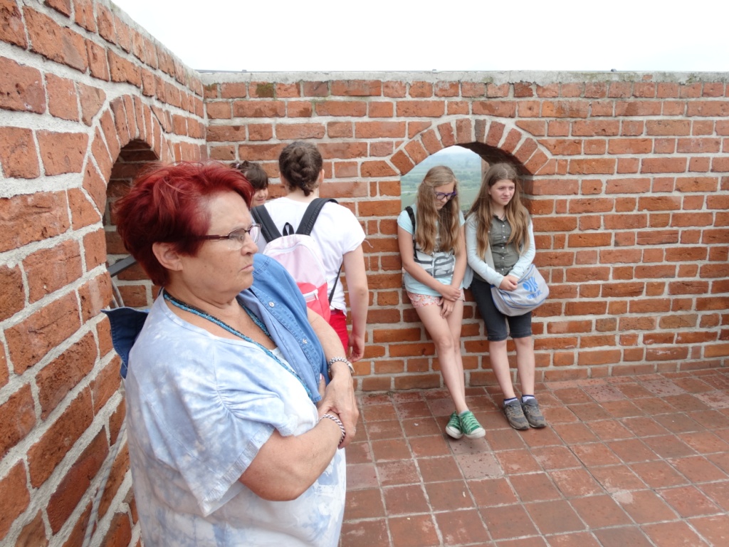 Na początku wysłuchaliśmy prelekcji na temat chrztu Mieszka I. Następna lekcja połączona z wystawą odbyła się w jednej z trzech baszt zamku, w której odtworzono komnatę kasztelana. Jedna z uczennic wystąpiła tu w stroju regionalnym. Dużo emocji dostarczyło pokonywanie stromych schodów prowadzących na galeryjką widokową i roztaczająca się z niej panorama.