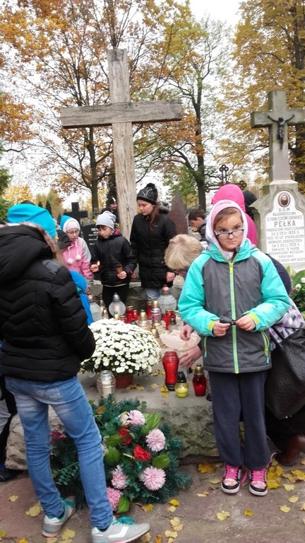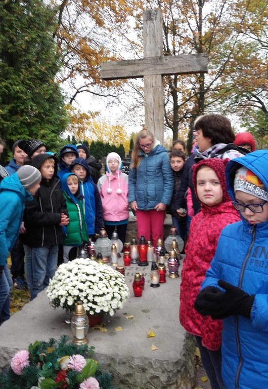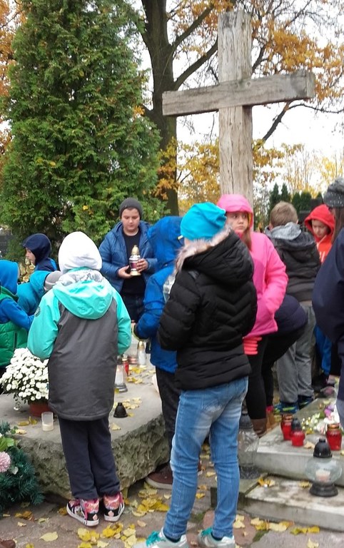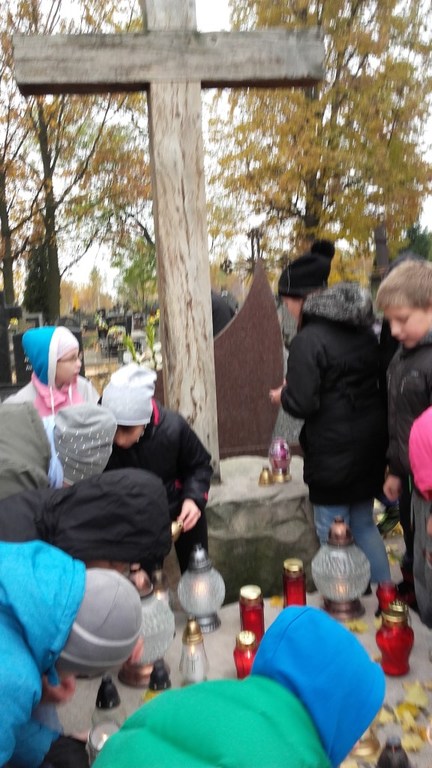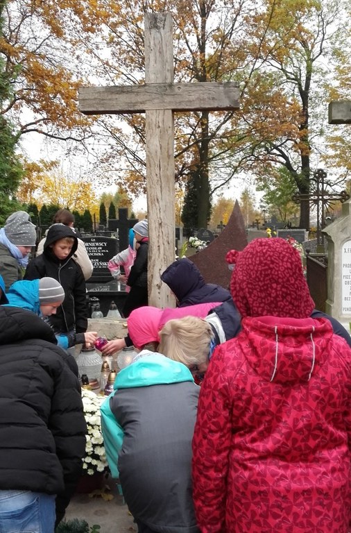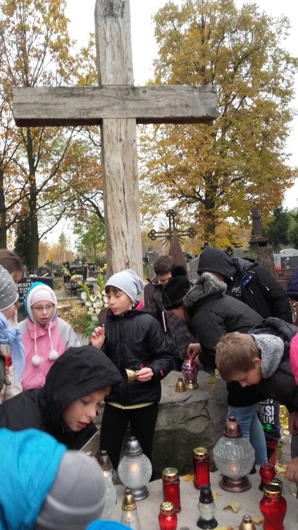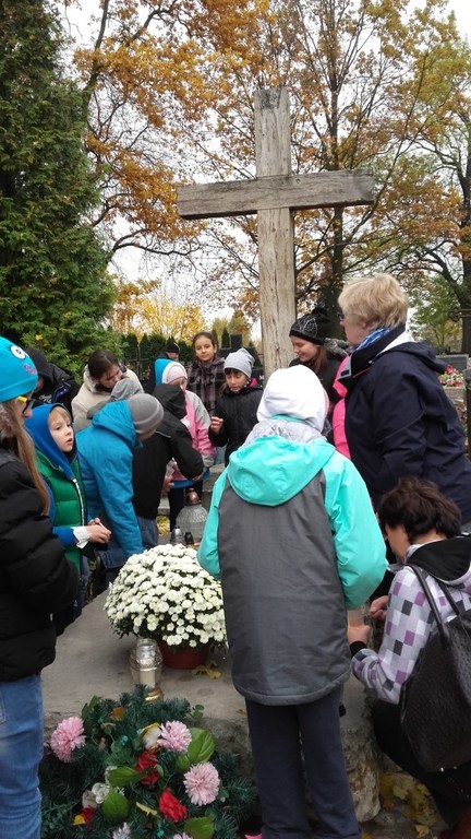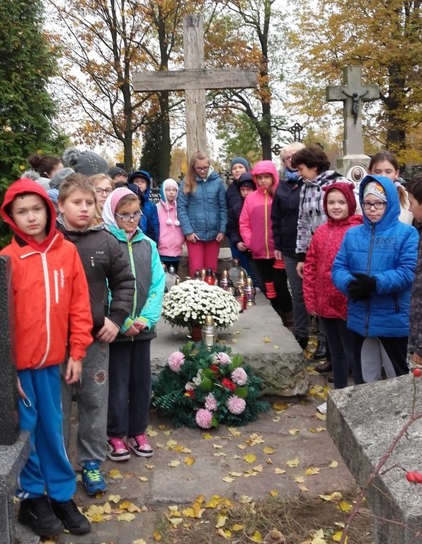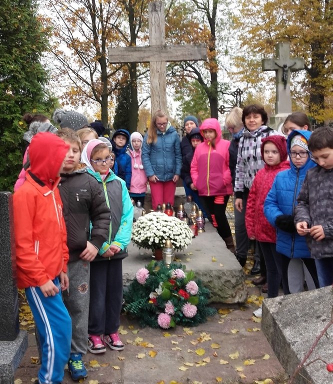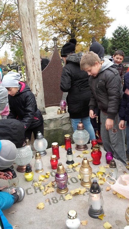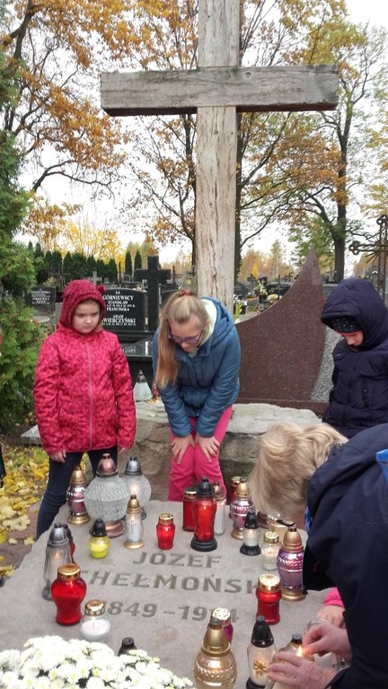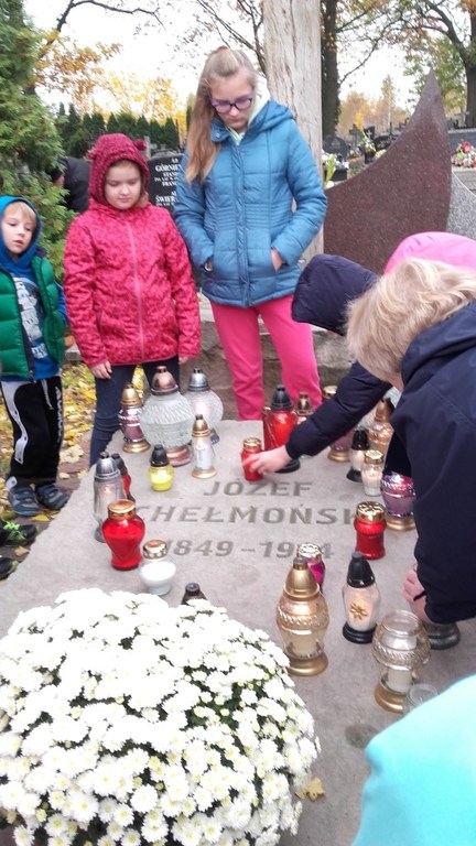 Wzorem lat ubiegłych uczniowie naszej szkoły odwiedzili tuż przed dniem Wszystkich Świętych grób patrona szkoły Józefa Chełmońskiego na cmentarzu w Ojrzanowie. Dzieci oczyściły grobowiec z liści, złożyły kwiaty i zapaliły znicze...