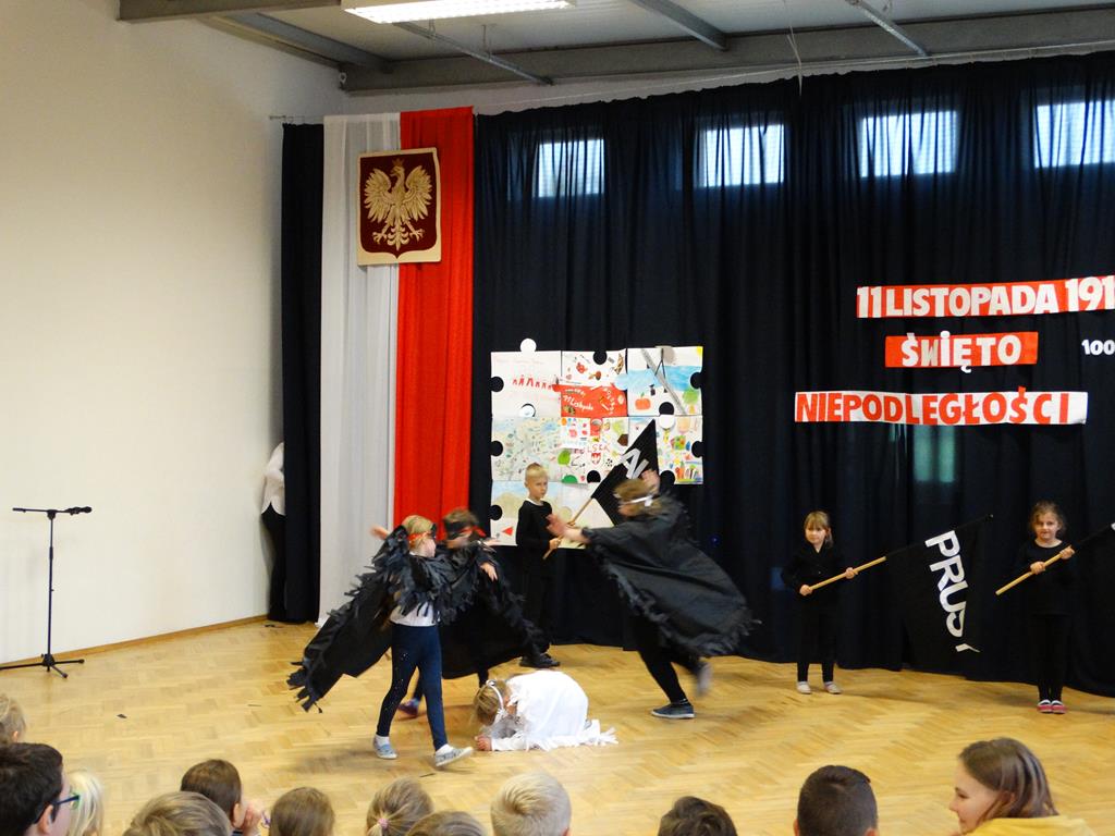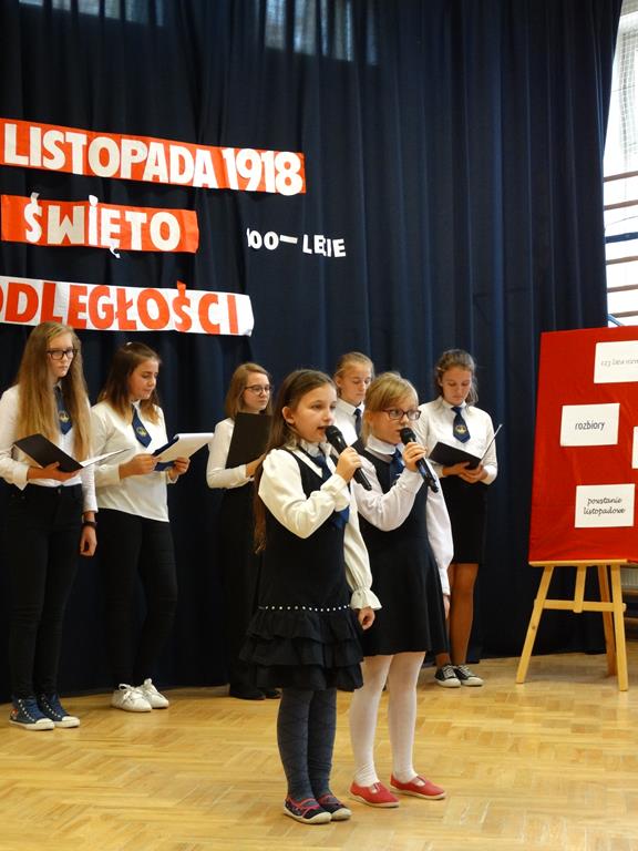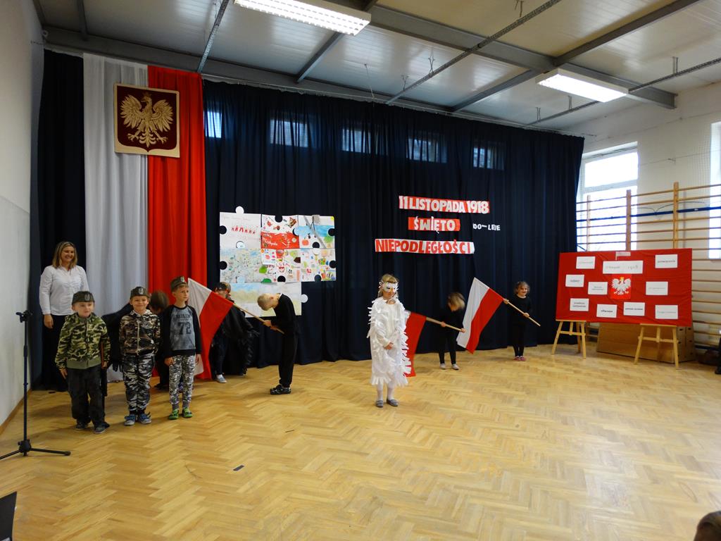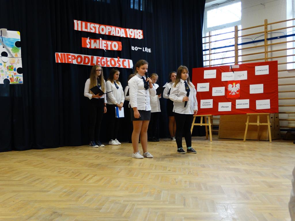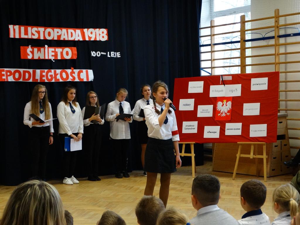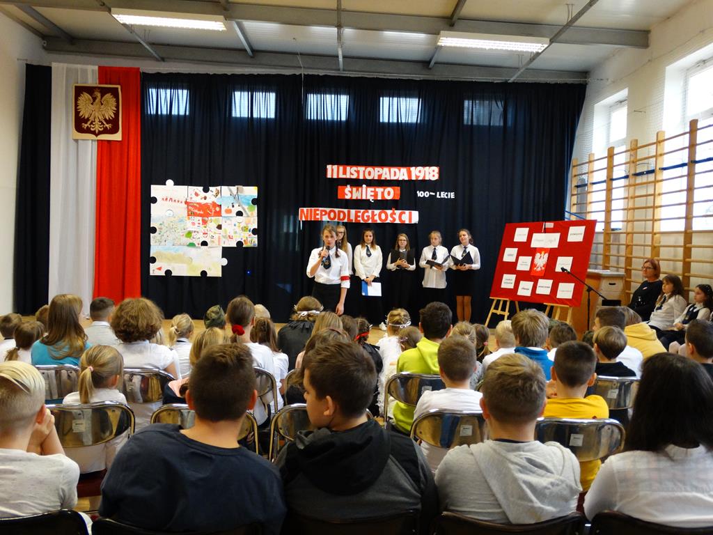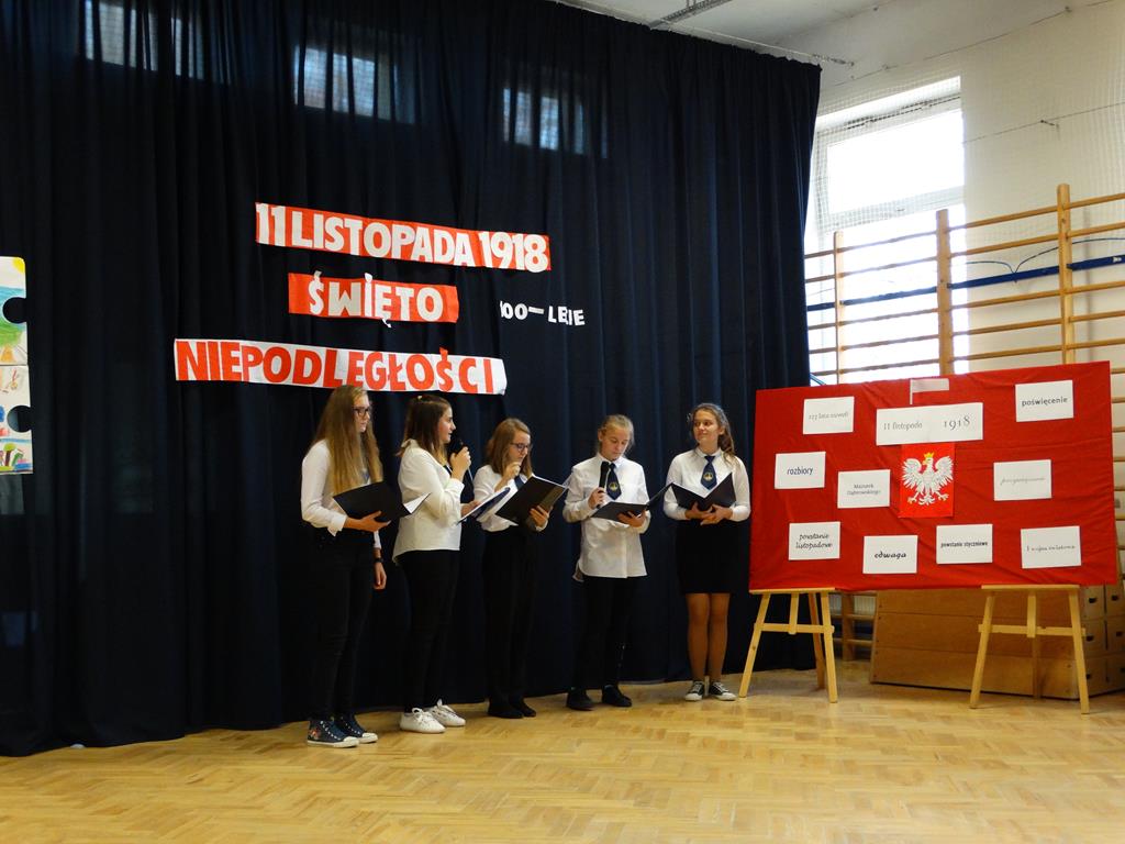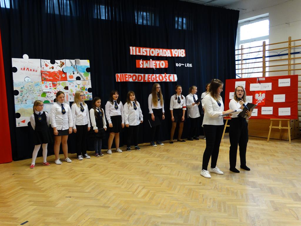 13 listopada w naszej szkole odbyły się uroczystości z okazji 100-lecia odzyskania przez Polskę Niepodległości. Uczniowie uświetnili to święto piosenką, wierszem i pięknym tańcem.
