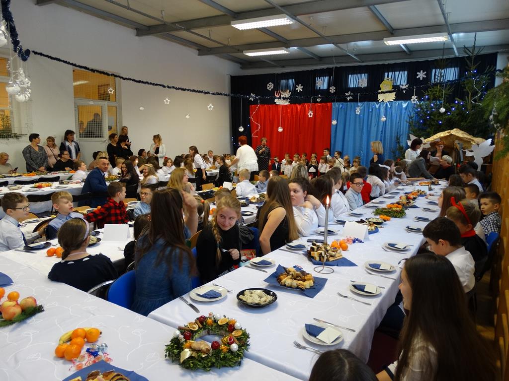 "Jest taki dzień, bardzo ciepły choć grudniowy...." tradycją naszej szkolnej społeczności jest uroczysta wigilia. Tak też było i w tym roku. 21 grudnia zebraliśmy sie wszyscy aby razem przeżywać magię Świąt Bożego Narodzenia. Wspólne świętowanie wzbogaciły występy uczniów naszej szkoły. Pani Dyrektor złożyła życzenia Rodzicom i uczniom. Pani Wanda Ślusarczyk przekazała na ręce Dyrekcji "Betlejemskie Światełko Pokoju", przywiezione przez harcerzy z Głodówki w Tatrach. Szkolna wigilia wprowadziła nas w radosny klimat świąt.