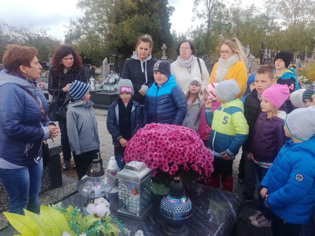 Dzień Wszystkich Świętych 1 listopada oraz przypadający po nim Dzień Zaduszny to szczególny moment, w którym wspominamy tych, którzy odeszli. Uczniowie klas 0 - III udali się na Cmentarz Parafialny w Tarczynie, aby zapalić symboliczne znicze i postawić kwiaty na grobach osób zwiazanych ze szkołą.