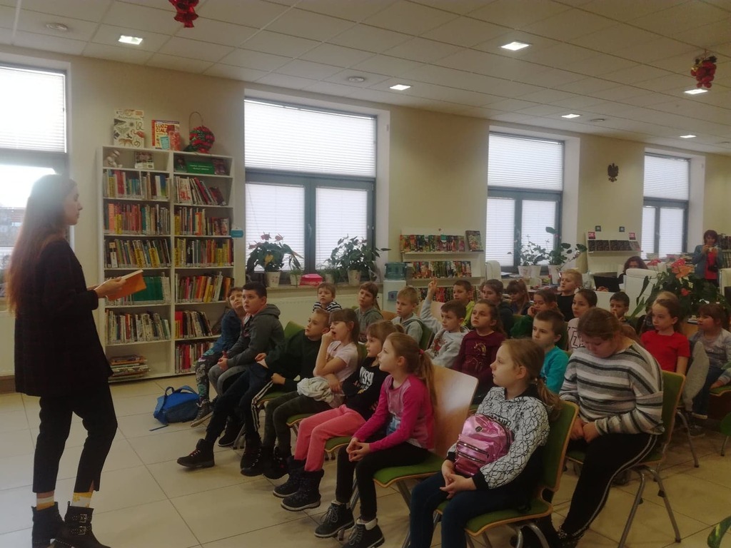 13 stycznia uczniowie klas 1-3 brali udział w warsztatach czytelniczych "Detektywi z Tajemniczej 5" w Gminnej Bibliotece w Tarczynie.