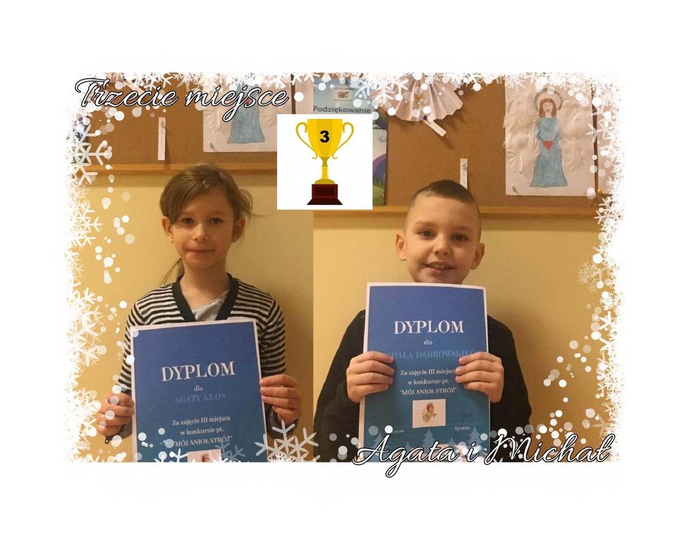 Dzieci z klas I - III wróciły w styczniu do zajęć stacjonarnych więc wręczone zostały im dyplomy i nagrody za konkurs plastyczny "Mój anioł stróż".