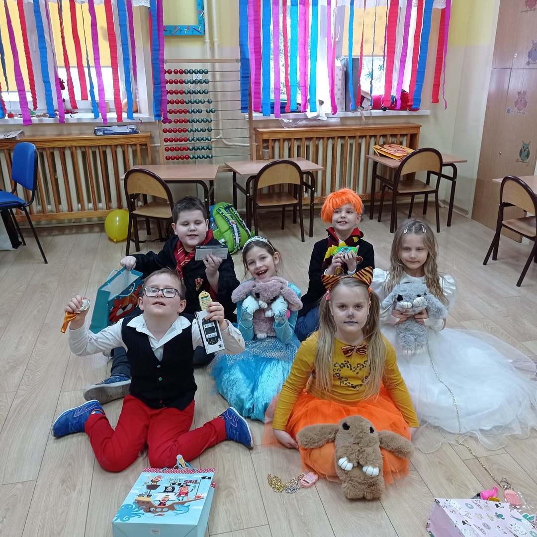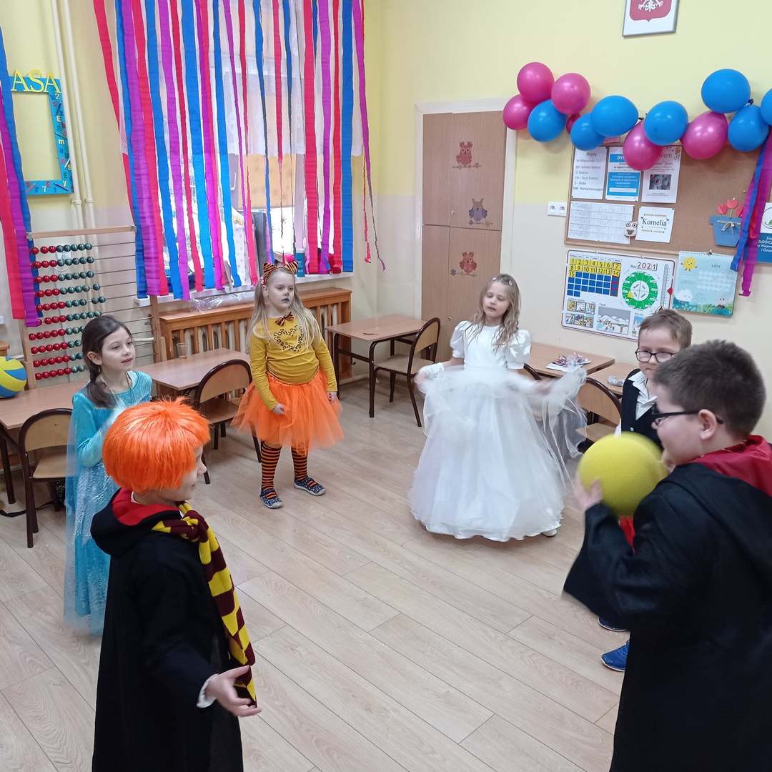 Kolorowe stroje i skoczna muzyka, słodki poczęstunek – w takiej atmosferze bawili się pierwszoklasiści 15 lutego podczas balu karnawałowego. Dzieci z dumą prezentowały bajeczne stroje. Z wielką ochotą uczestniczyły w tańcach, zabawach i ciekawych konkursach. Na twarzach wszystkich malował się uśmiech, który nie znikał mimo chwilowego zmęczenia. Bal był okazją do zintegrowania dzieci po tak długiej nieobecności w szkole i pozostawił wiele niesamowitych wrażeń.