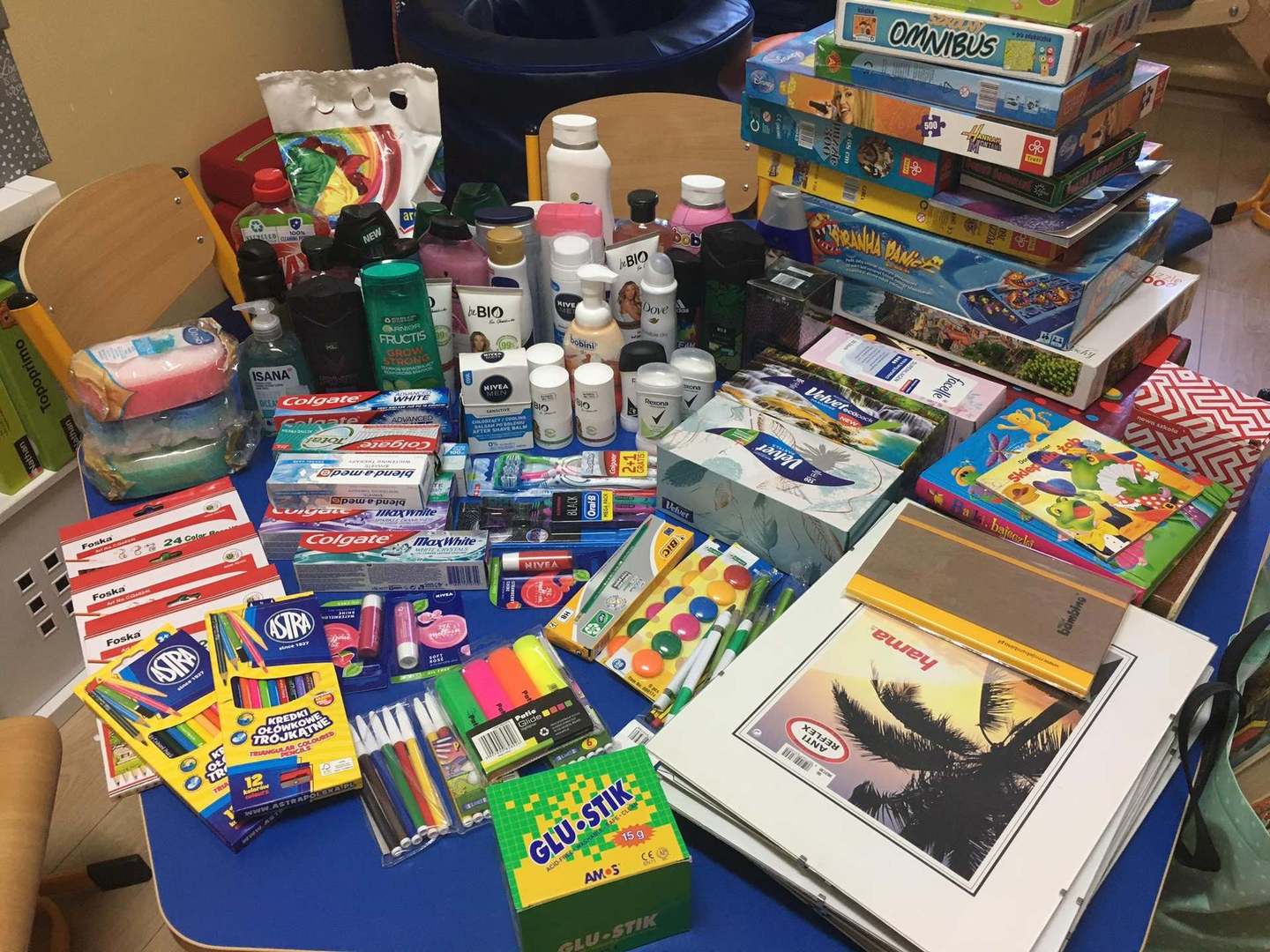 Nasi wolontariusze oprócz pomocy w porządkowaniu terenu Specjalnego Ośrodka Szkolno- Wychowawczego w Jurkach, zaangażowali się w zorganizowaniu zbiórki na rzecz wychowanków. Uczniowie klas starszych i wychowankowie oddziału przedszkolnego przynosili środki higieniczne, kosmetyki, gry, książki i inne przydatne rzeczy, które dzieci mieszkające w internacie będą mogły wykorzystać.