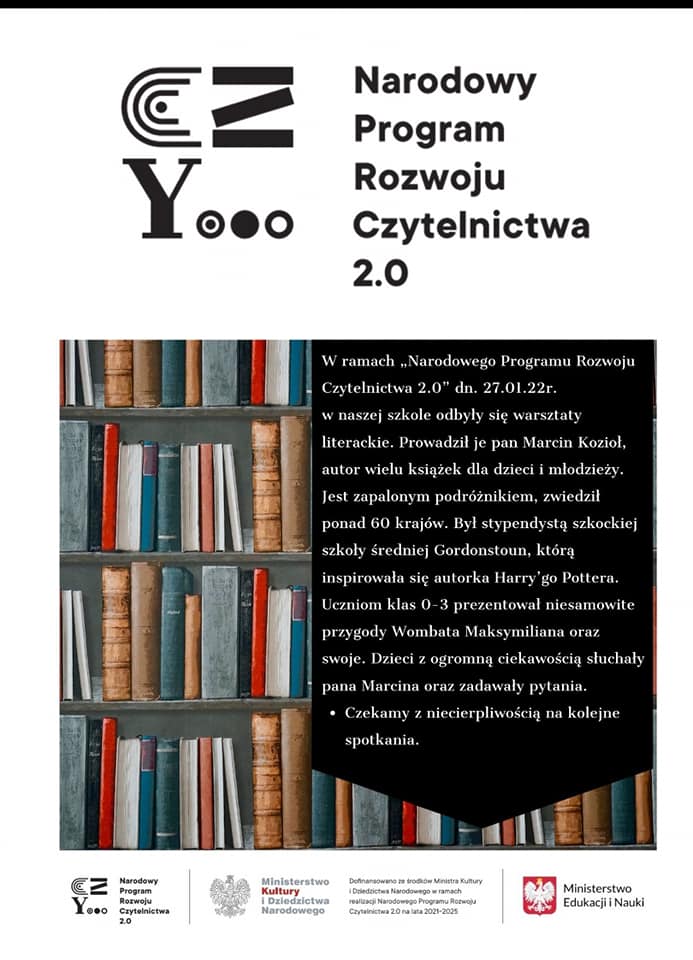 W ramach "Narodowego Programu Rozwoju Czytelnictwa 2.0" dn. 27.01.22r. w naszej szkole odbyły się warsztaty literackie.
