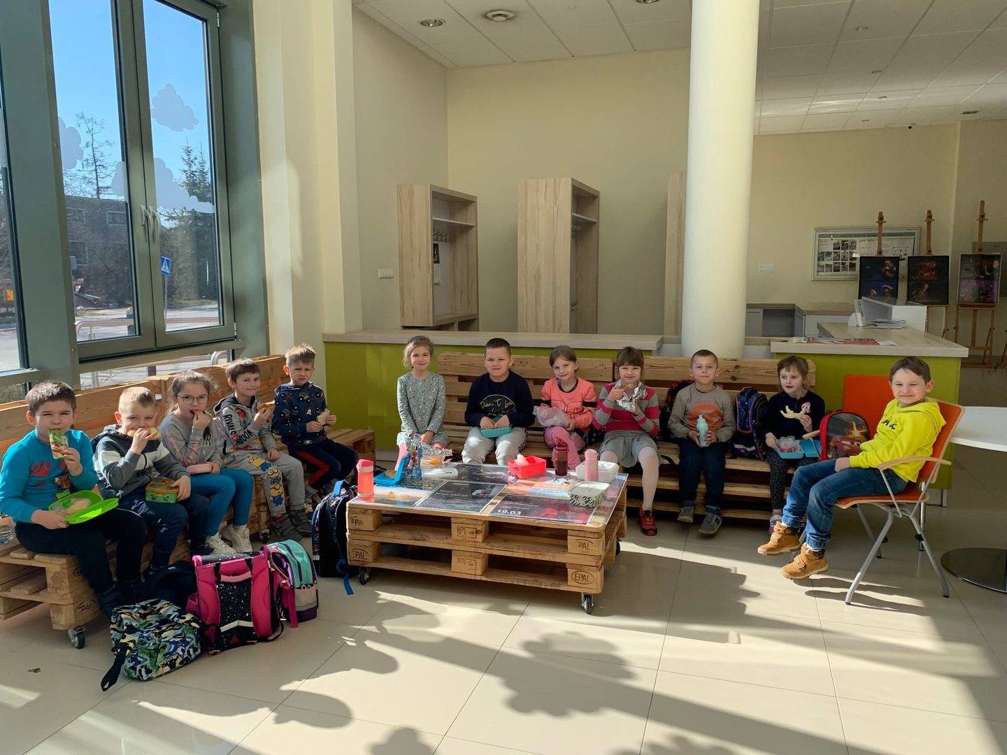 Dzieci z oddziału przedszkolnego wybrały się w piątek 18 marca do GOK w Tarczynie. Poranek rozpoczęły od seansu w "KINIE ZA ROGIEM". Następnie wszyscy udali się na lekcję biblioteczną do Publicznej Biblioteki w Tarczynie. Dzieci zapoznały się z biblioteką, mogły poczytać i pooglądać wszystkie dostępne książeczki i zapoznać się z projektem „Mała książka – wielki Człowiek”.