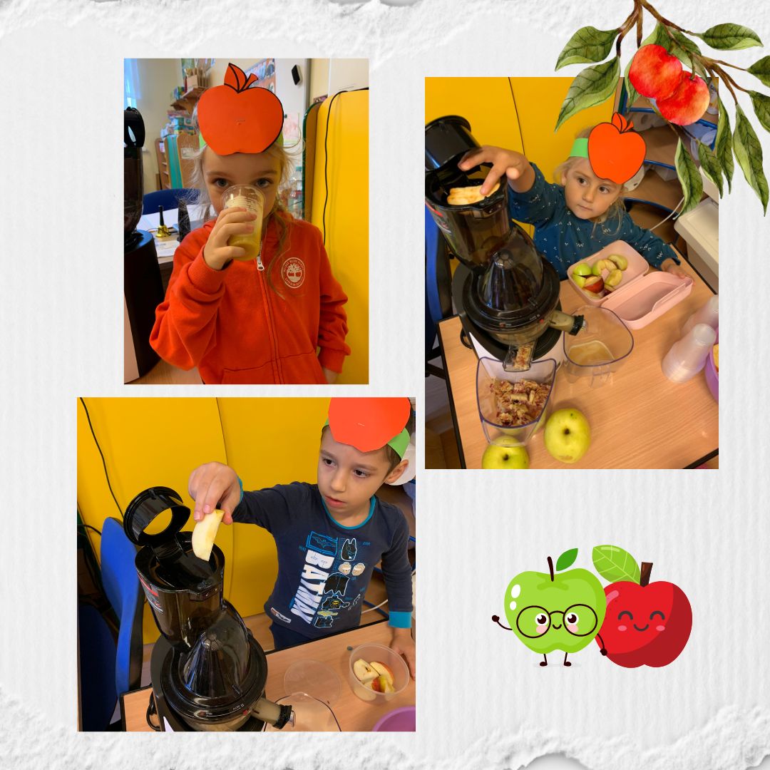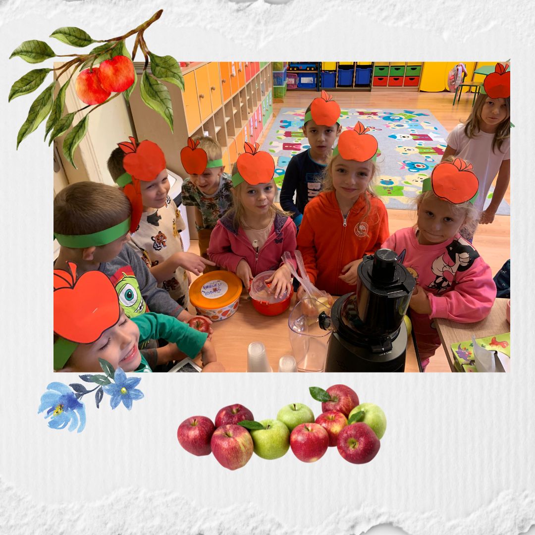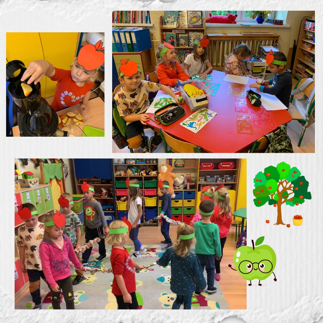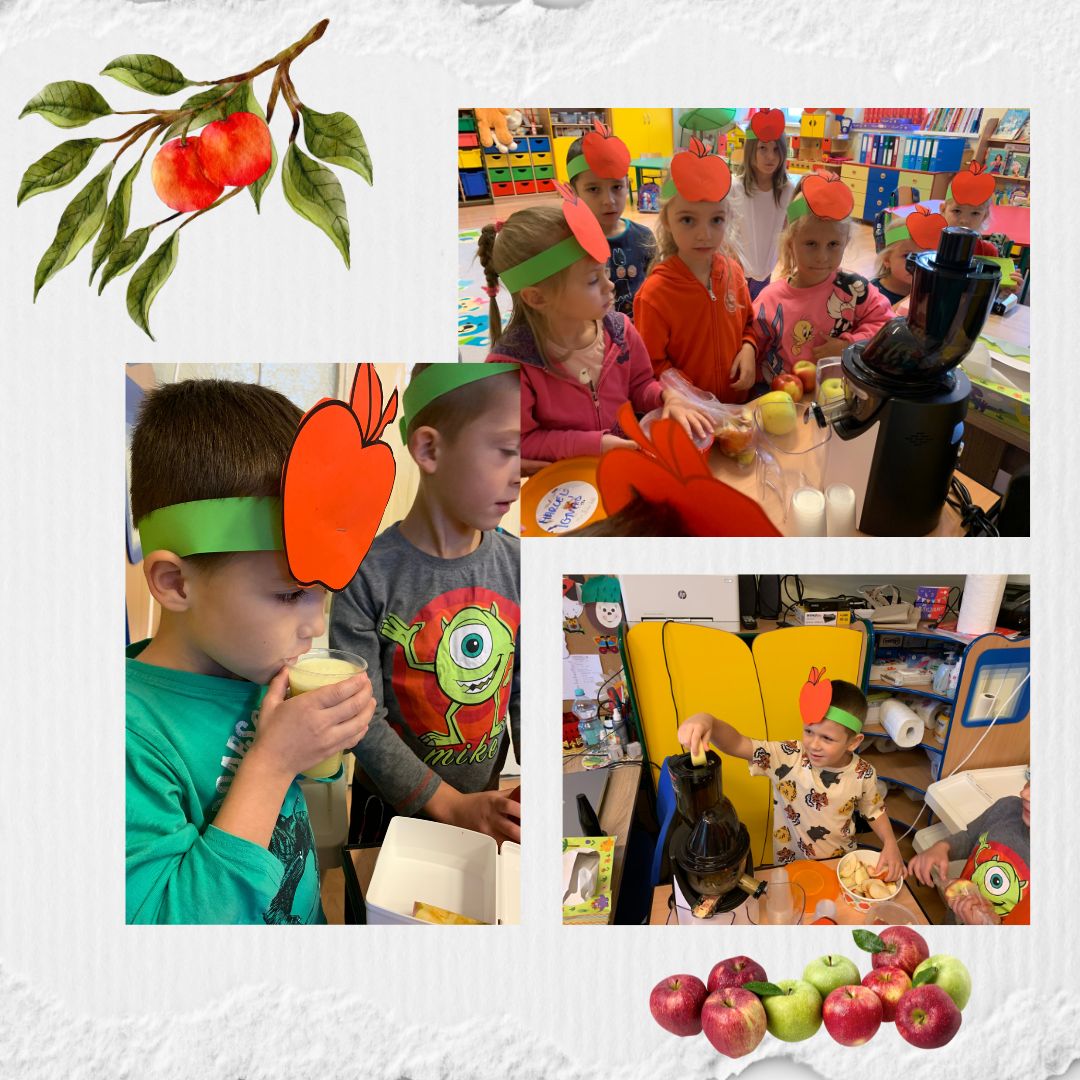 W dniu dzisiejszym w przedszkolu świętowaliśmy DZIEŃ JABŁKA. Dzieci poszerzały swoją wiedzę o jabłkach. Zdobywały wiadomości na temat potraw i przetworów z jabłek. Same zrobiły pyszny sok. Zachęcamy do spożywania owoców, a w szczególności jabłek i to pod różnymi postaciami z powodu jego walorów zdrowotnych i odżywczych.
